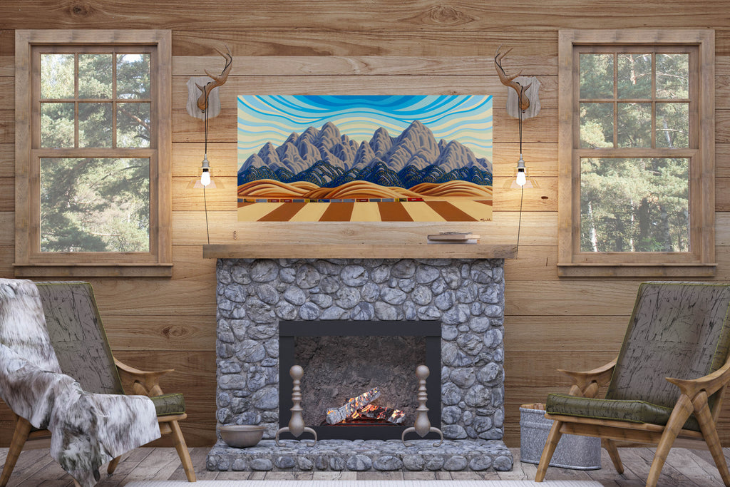 This 24"X48" painting will arrive stretched and ready to hang on a 1 3/4" gallery stretcher and has finished sides. All you have to do is put a nail in the wall and enjoy.
